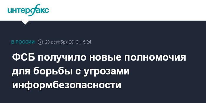 Москва. 23 декабря. INTERFAX.RU - ФСБ РФ получило право проводить оперативно-разыскные мероприятия в целях противодействия угрозам информационной безопасности страны.
