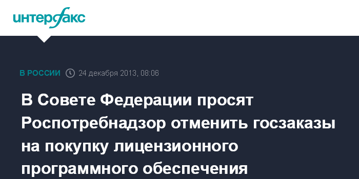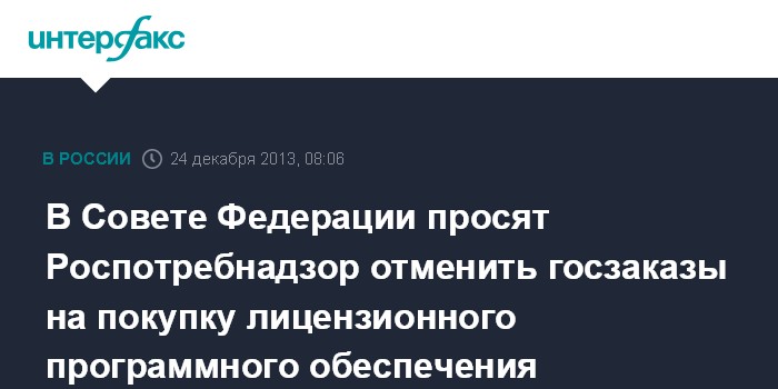 В Совете Федерации просят Роспотребнадзор отменить госзаказы на покупку лицензионного программного обеспечения