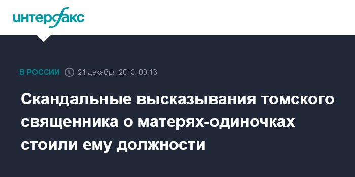 Скандальные высказывания томского священника о матерях-одиночках стоили ему должности