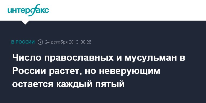 Число православных и мусульман в России растет, но неверующим остается каждый пятый
