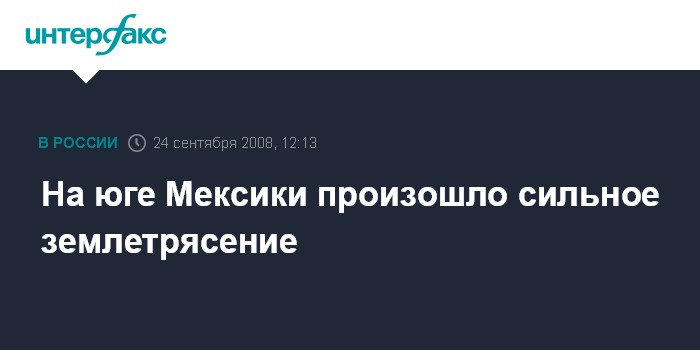 Москва. 24 сентября. INTERFAX.RU - Землетрясение силой 6,4 балла по шкале Рихтера произошло в ночь на среду на побережье штата Халиско на западе Мексики. Эпицентр землетрясения находился на глубине 42 км, в 56 км к юго-западу от крупного мексиканского туристического центра Акапулько.