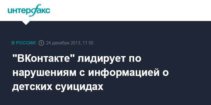 "ВКонтакте" лидирует по нарушениям с информацией о детских суицидах