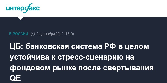ЦБ: банковская система РФ в целом устойчива к стресс-сценарию на фондовом рынке после свертывания QE