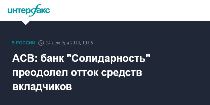 АСВ: банк "Солидарность" преодолел отток средств вкладчиков