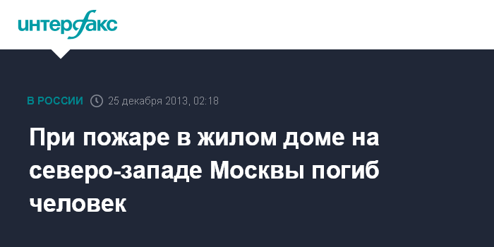 Москва. 25 декабря. INTERFAX.RU - Пожар в квартире на Пятницком шоссе в Москве ликвидирован, погиб один человек, сообщили "Интерфаксу" в среду в пресс-службе ГУ МЧС РФ по Москве.