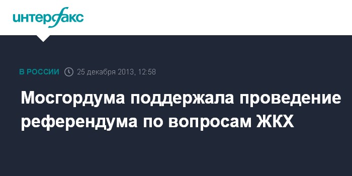 Москва. 25 декабря. INTERFAX.RU - Столичный парламент на заседании в среду поддержал инициативу московского отделения КПРФ о проведении референдума по вопросам ЖКХ, передает корреспондент "Интерфакса".