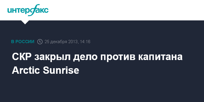Москва. 25 декабря. INTERFAX.RU - Капитан судна Arctic Sunrise Питер Уилкокс и еще девять членов экипажа получили постановления следователей о закрытии в отношении них уголовных дел, сообщается в Twitter Greenpeace.