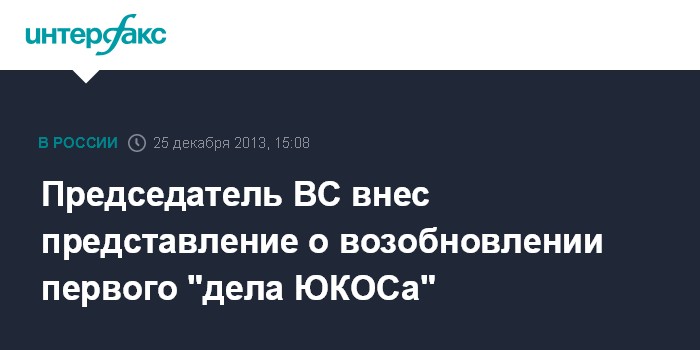 Председатель ВС внес представление о возобновлении первого "дела ЮКОСа"