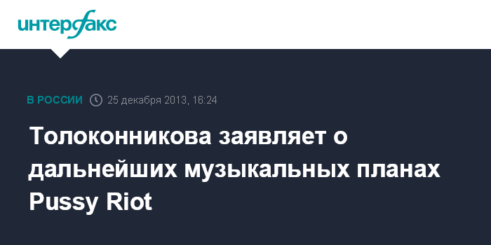 Москва. 25 декабря. INTERFAX.RU - Надежда Толоконникова уверена, что панк-проект Pussy Riot стал жить самостоятельной жизнью.