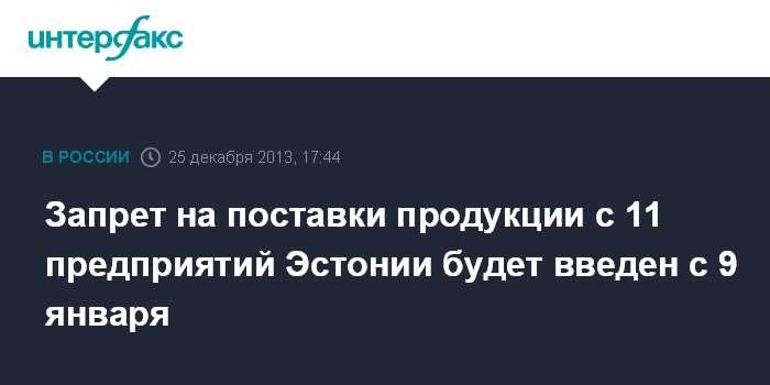 Запрет на поставки продукции с 11 предприятий Эстонии будет введен с 9 января