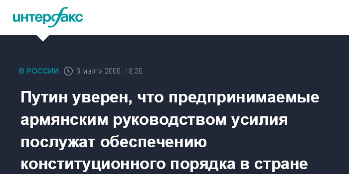 Путин уверен, что предпринимаемые армянским руководством усилия послужат обеспечению конституционного порядка в стране