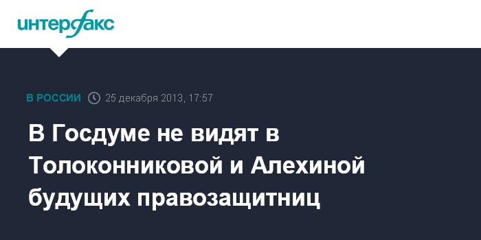 В Госдуме не видят в Толоконниковой и Алехиной будущих правозащитниц