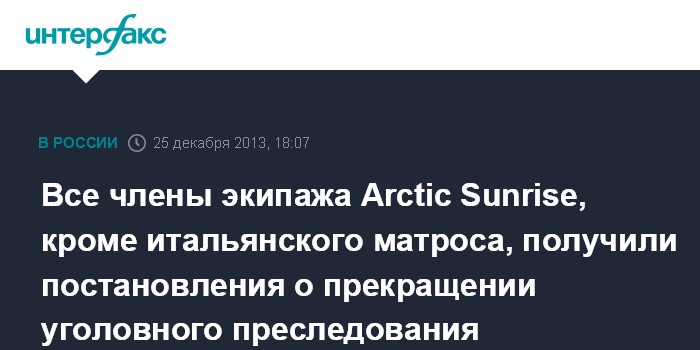Все члены экипажа Arctic Sunrise, кроме итальянского матроса, получили постановления о прекращении уголовного преследования