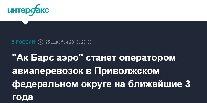 Москва. 25 декабря. INTERFAX.RU - "Ак Барс аэро" станет главным перевозчиком между городами Приволжского федерального округа на 2014-2016 годы, сообщили "Интерфаксу" в пресс-службе авиакомпании.