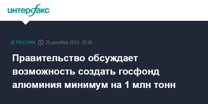 Москва. 25 декабря. INTERFAX.RU - Правительство России обсуждает предложение ОК "РусАл" о создании госфонда алюминия объемом минимум 1 млн тонн, но пока не видит для это ресурсов, заявил вице-премьер РФ Аркадий Дворкович в интервью каналу "Россия 24".