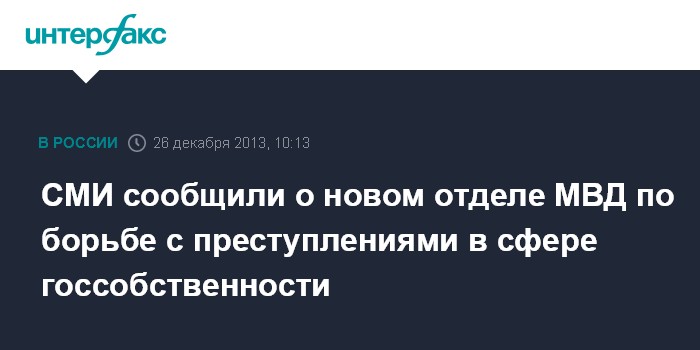 СМИ сообщили о новом отделе МВД по борьбе с преступлениями в сфере госсобственности