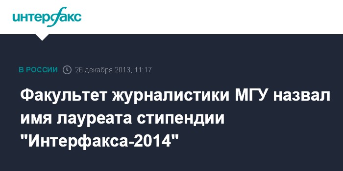 Факультет журналистики МГУ назвал имя лауреата стипендии "Интерфакса-2014"