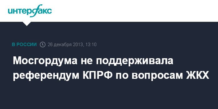Москва. 26 декабря. INTERFAX.RU - Депутаты Мосгордумы на заседании в среду большинством голосов признали не соответствующей требованиям законодательства инициативу о проведении городского референдума по вопросам ЖКХ и электронной карты.