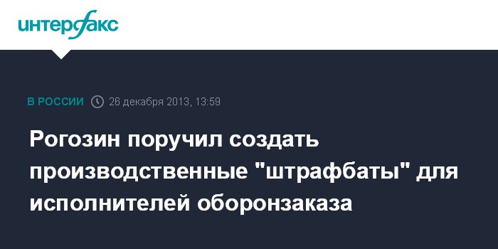 "Сейчас я поручил создать, условно говоря, фигура речи, так называемые производственные штрафбаты. То есть, если производство некое, скажем, частное или государственное, не справляется с оборонным заказом, стабильно причем, и делает это системно, то просто оно дисквалифицируется на несколько лет. Оно не имеет право вообще участвовать в конкурсах, пока не исправит ситуацию", - сказал Рогозин в четверг на встрече с сотрудниками концерна "Калашников".