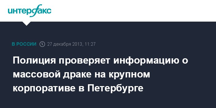 Москва. 27 декабря. INTERFAX.RU - Полиция Калининского района Санкт-Петербурга проверяет сообщение о драке в развлекательном комплексе во время новогоднего корпоратива.