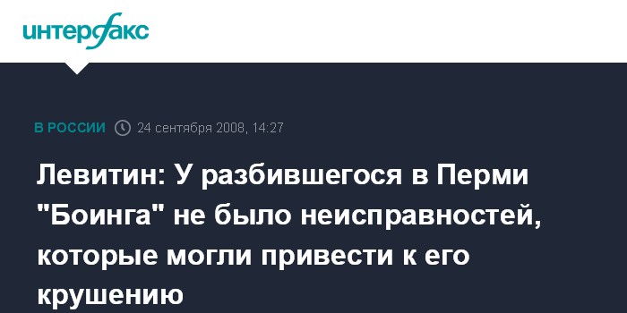 "Производитель каждого самолета дает неисправности (перечень неисправностей - ИФ), с которыми самолет может летать. Там не было такой ситуации, при которой самолет нельзя было бы выпускать в рейс ввиду его неисправности. Техническая комиссия сейчас рассматривает именно те вопросы отложенных неисправностей, и говорит, что предварительно они не могли повлиять на то, что произошло с самолетом", - сказал Левитин в среду на пресс-конференции в Перми.