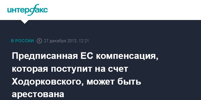 Предписанная ЕС компенсация, которая поступит на счет Ходорковского, может быть арестована