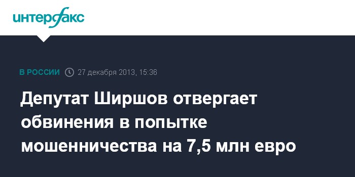 Депутат Ширшов отвергает обвинения в попытке мошенничества на 7,5 млн евро