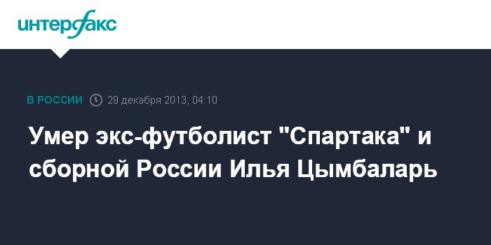Одесса. 29 декабря. СПОРТ-ЭКСПРЕСС/ИНТЕРФАКС - В Одессе на 45-м году жизни скончался бывший футболист сборной России и московского "Спартака" Илья Цымбаларь, сообщает Matchday.com.ua.
