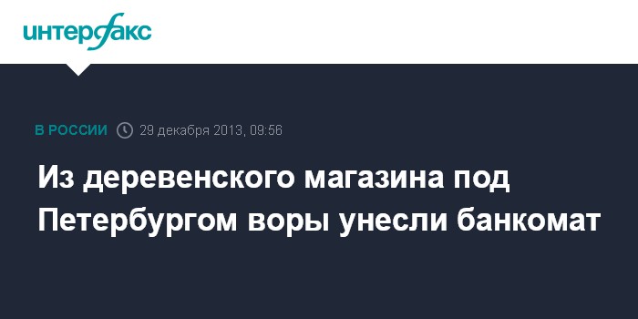 Москва. 29 декабря. INTERFAX.RU - Преступники похитили банкомат из магазина в деревне в Ленинградской области, сообщили в воскресенье "Интерфаксу" в пресс-центре МВД РФ.