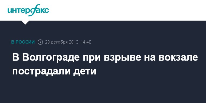 Москва. 29 декабря. INTERFAX.RU - Среди раненных в результате теракта в Волгограде есть дети, в связи с трагедий в городе в воскресенье отменены все праздничные мероприятия, сообщила его мэр Ирина Гусева. "Среди раненых есть дети", - сообщила И.Гусева в эфире телеканала "Россия-24" .