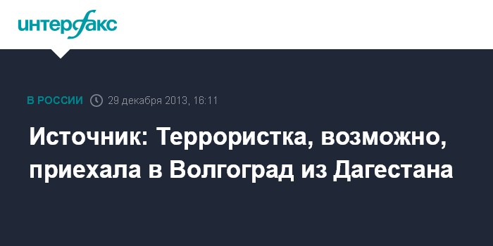 Источник: Террористка, возможно, приехала в Волгоград из Дагестана