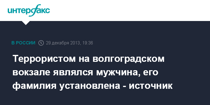 Террористом на волгоградском вокзале являлся мужчина, его фамилия установлена - источник