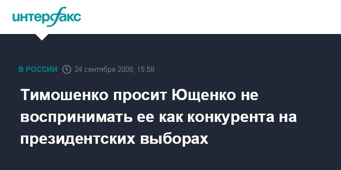 Тимошенко просит Ющенко не воспринимать ее как конкурента на президентских выборах