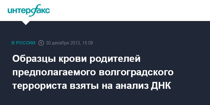 Махачкала. 30 декабря. INTERFAX.RU - Родители Павла Печенкина, который мог устроить взрыв на вокзале в Волгограде 29 декабря, утром в понедельник сдали кровь на анализ ДНК, который должен дать ответ на вопрос о возможном участии их сына в теракте.