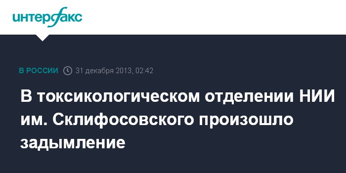 В токсикологическом отделении НИИ им. Склифосовского произошло задымление