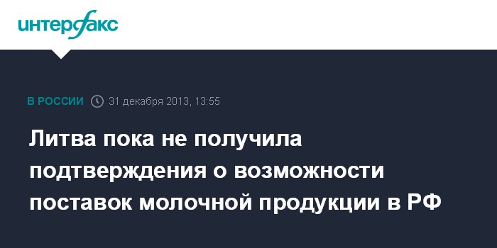 Москва. 31 декабря. INTERFAX.RU - Литва надеется, что Россия представит официальную информацию, подтверждающую сообщения о снятии запрета на импорт литовской молочной продукции, заявил министр иностранных дел республики Линас Линкявичюс (Linas Linkevicius).