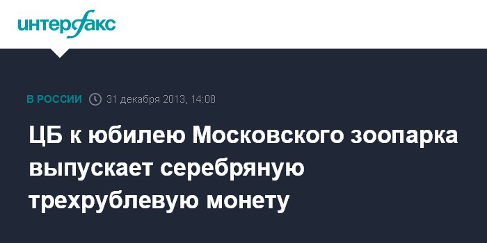 ЦБ к юбилею Московского зоопарка выпускает серебряную трехрублевую монету