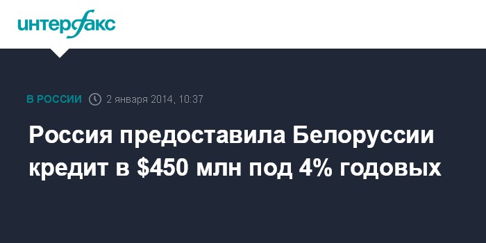 Россия предоставила Белоруссии кредит в $450 млн под 4% годовых