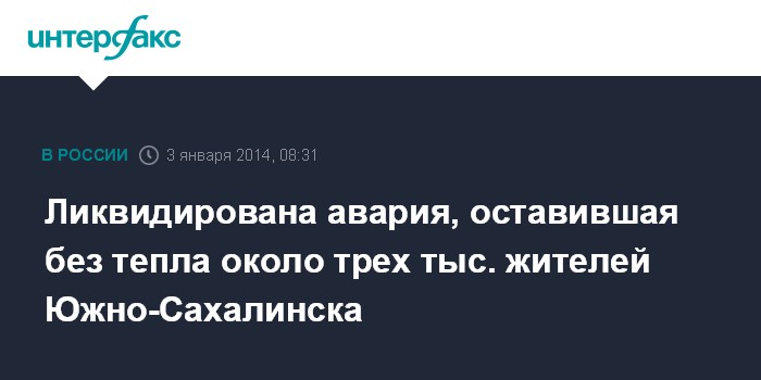 Ликвидирована авария, оставившая без тепла около трех тыс. жителей Южно-Сахалинска