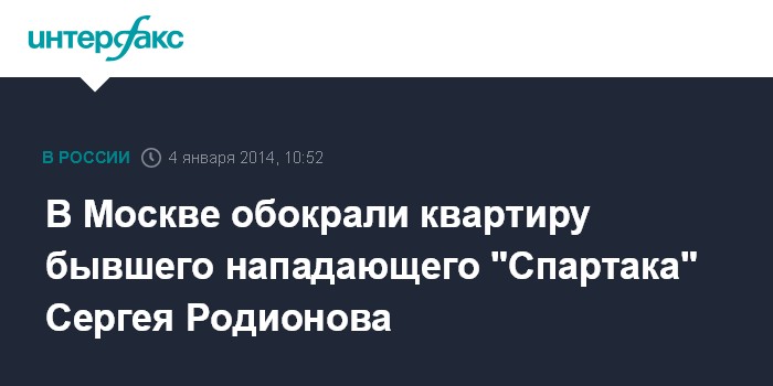 Москва. 4 января. INTERFAX.RU - Неизвестные проникли в квартиру бывшего нападающего ФК "Спартак" Сергея Родионова, украв из нее порядка 3 млн рублей, сообщил "Интерфаксу" в субботу источник в правоохранительных органах