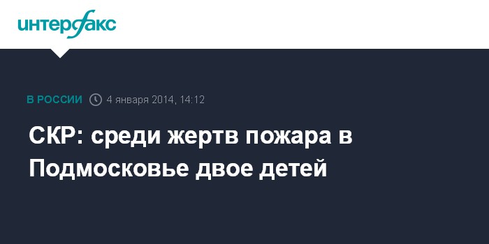 Москва. 4 января. INTERFAX.RU - Двое детей и трое взрослых погибли в результате пожара в городе Железнодорожный, сообщила в субботу "Интерфаксу" представитель подмосковного главка СКР Ольга Врадий.