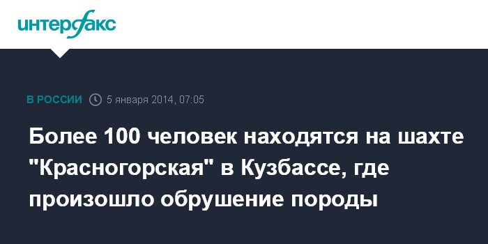 Кемерово. 5 января. ИНТЕРФАКС-СИБИРЬ - Поисково-спасательные работы начались на шахте "Красногорская", где произошло обрушение породы, сообщил агентству "Интерфакс-Сибирь" источник в ГУ МЧС России по региону.