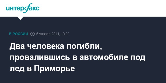 Якутск. 5 января. ИНТЕРФАКС-ДАЛЬНИЙ ВОСТОК - Легковой автомобиль провалился под лед в бухте Новгородская, Хасанского муниципального района, погибли двое человек, сообщает в воскресенье пресс-служба ГУ МЧС России по Приморскому краю.
