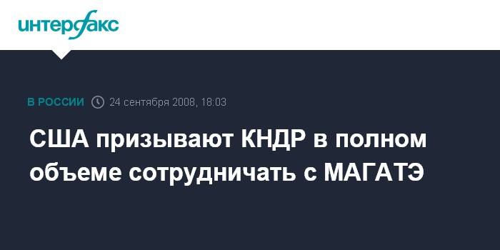 Москва. 24 сентября. INTERFAX.RU - Руководству КНДР следует отказаться от намерения ограничить сотрудничество с Международным агентством по атомной энергии (МАГАТЭ), считают власти США.