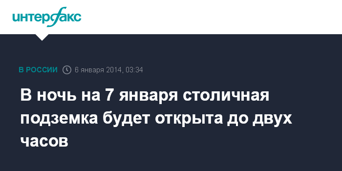 "В ночь с 6 на 7 января 2014 года Московский метрополитен будет открыт для входа пассажиров до двух часов ночи", - сообщили "Интерфаксу" в пресс-службе столичной подземки.