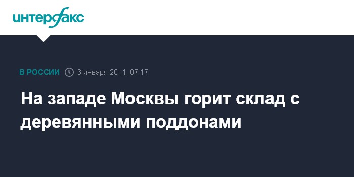 Москва. 6 января. INTERFAX.RU - На западе Москвы загорелся склад с деревянными поддонами на площади около 1 тыс. квадратных метров, сообщил "Интерфаксу" источник в правоохранительных органах в понедельник.