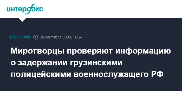 Москва. 24 сентября. INTERFAX.RU - В командовании российских миротворцев в зоне грузино-югоосетинского конфликта проверяют сообщения о том, что в "буферной зоне" грузинские полицейские задержали российского военнослужащего.