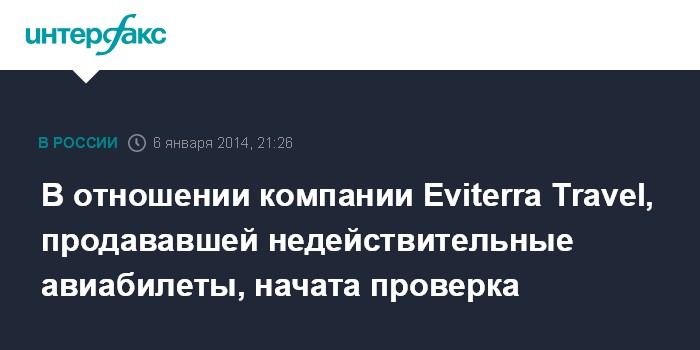 В отношении компании Eviterra Travel, продававшей недействительные авиабилеты, начата проверка