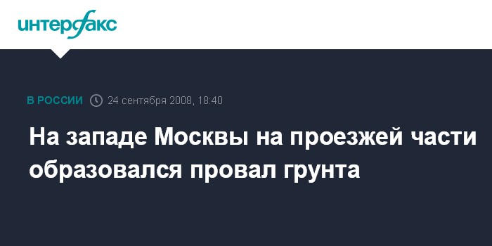 Москва. 24 сентября. INTERFAX.RU - На западе Москвы на Гжатской улице в районе дома 16 на проезжей части образовался провал грунта, сообщил "Интерфаксу" в среду источник в правоохранительных органах.