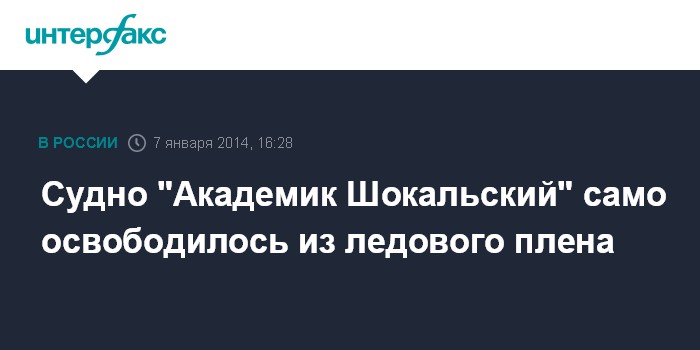Москва. 7 января. INTERFAX.RU - Погода помогла российскому научному судну "Академик Шокальский" освободиться из ледового плена у берегов Антарктиды.